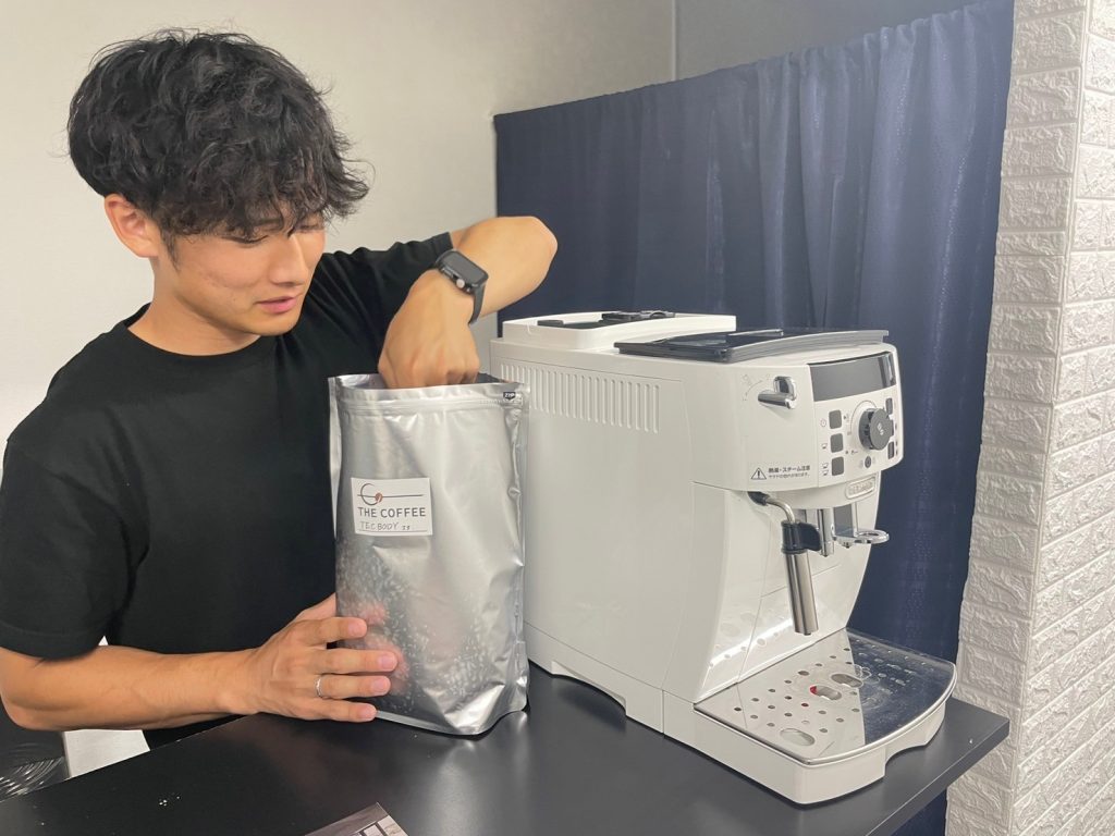 コーヒーメーカーとコーヒー豆をお渡しし、