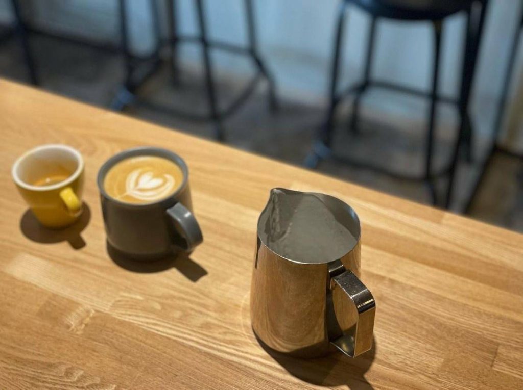シングルオリジンコーヒーでカフェラテを淹れています。